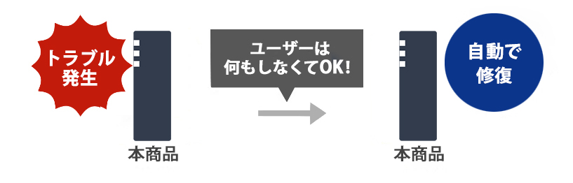 펌웨어는 HDD 및 eMMC에 복제되어 유지관리됩니다 HDD의 펌웨어가 손상되더라도 eMMC의 펌웨어를 이용해 자동으로 복구됩니다 이를 통해 시스템 다운타임을 방지하고 장기적으로 안정적인 작동을 제공합니다